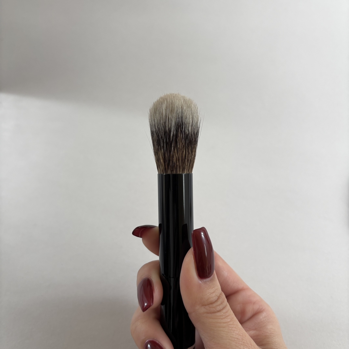 リス独特のキメ細かい毛先としっかりとしたボディのバネ・弾力性を併せ持つ、非常に特徴的なチークブラシです
