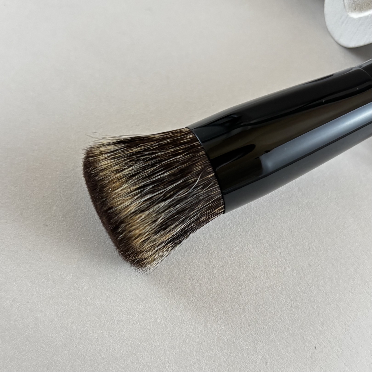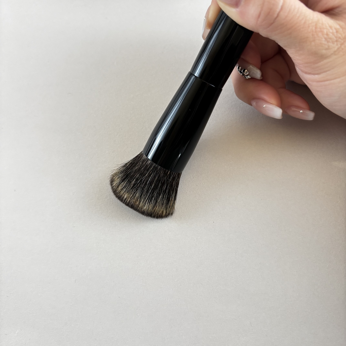 若干の「強さ」と「マット感」を加えた独特の仕上がり肌に優しくフィットさせ、あまり圧力を加えず、滑らせる方が綺麗に粉が馴染みます